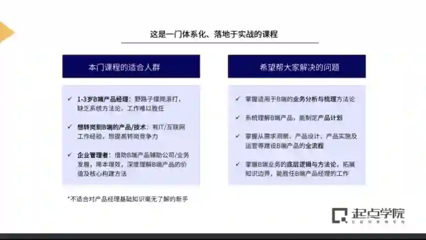 在合作伙伴腾讯课堂的帮助下,经过最近8个月的深度教研和打磨,人人都是产品经理与起点学院联合研发,一门B端产品体系课——《90天B端产品经理实战班》课程正式发布上线。