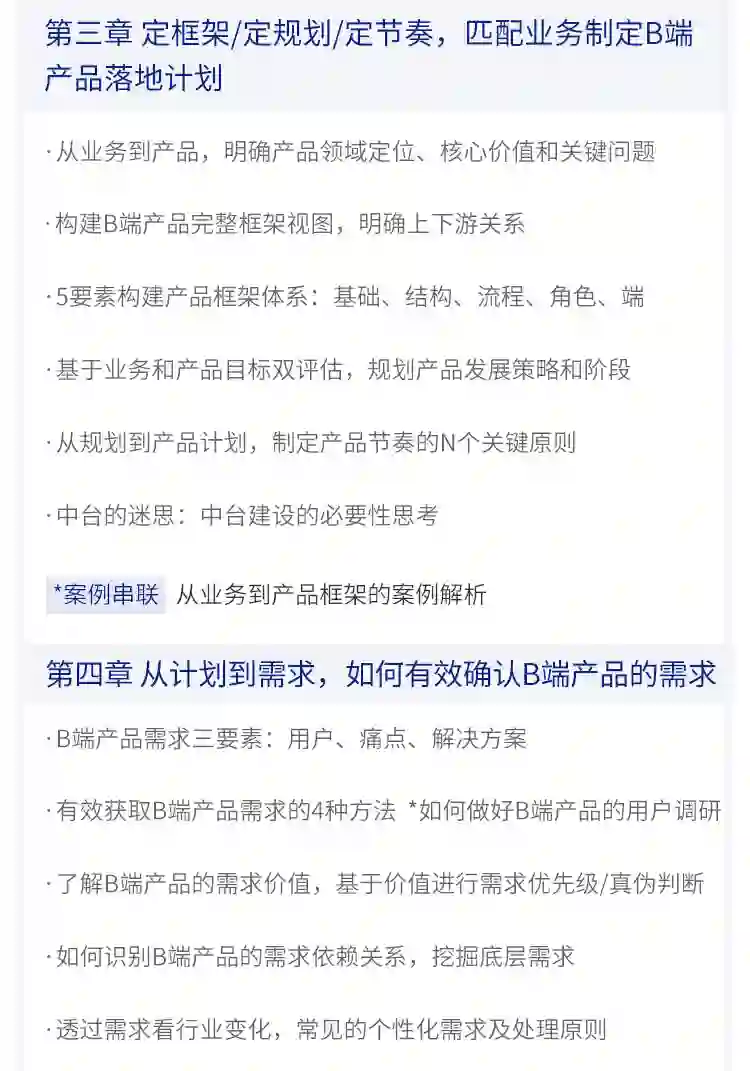 除此之外,B端产品经理除了掌握核心工作技能外,还需要具备极强的抽象能力、沟通协作、技术理解力,这些我们的课程中也给到了可以落地的方法,详细看大纲感受一下。