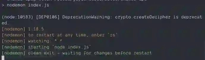 10月底,流行的node.js工具nodemon出现了一个问题,用户登录nodemon控制端后,会跳出一个弃用警告(deprecation warning),警告中提示crypto.createDecipher这个加密相关库已经被弃用。crypto是一个常用的加密解密库,可能是因为接口升级,它的crypto.createDecipher方法已经在新版中废弃,因此nodemon抛出了这个警告提示。