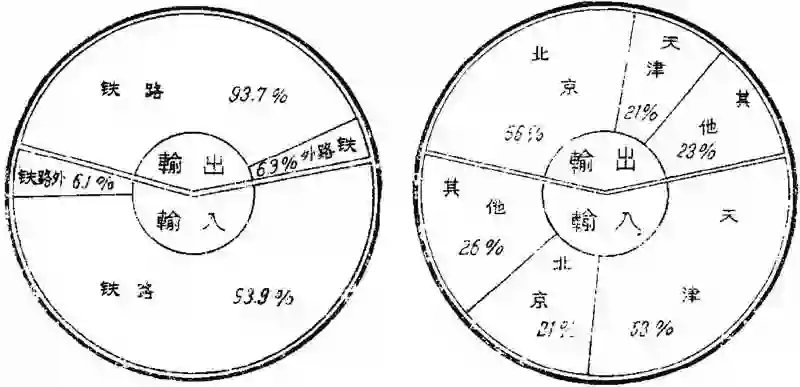 ▲ 经铁路和其他渠道实现的贸易额所占比重与各地贸易情况图