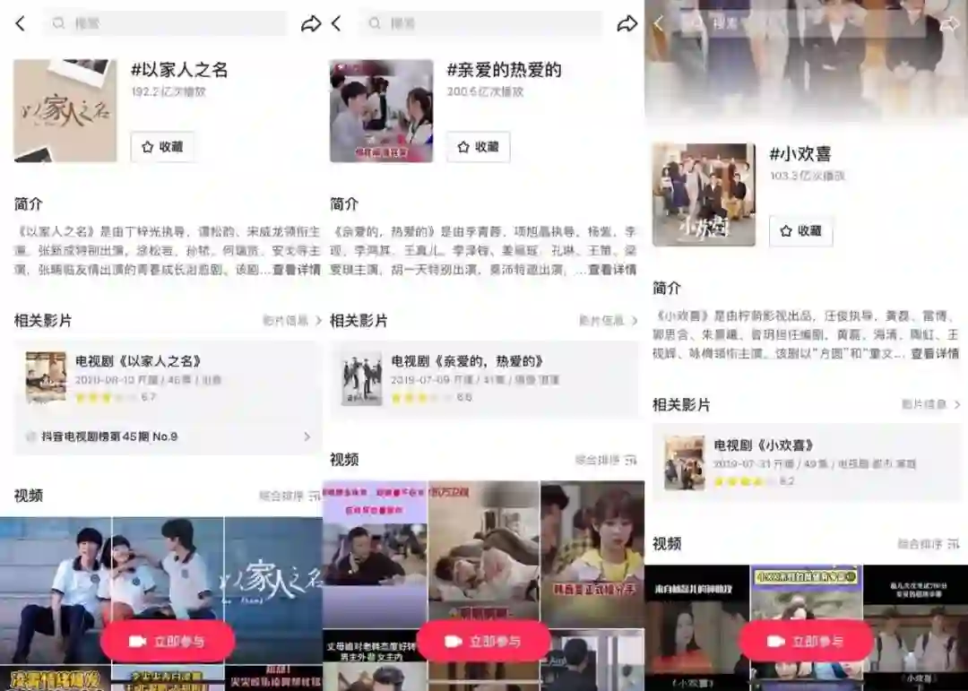当时,该部作品的总制片人张灼就对短视频平台给予了厚望。抖音随即成为了《以家人之名》的重要宣传基地,很大程度上助力了项目话题的发酵。在其看来,短视频平台不仅可以为长视频平台进行导流,相应的二次创作也成为了一面可实时反馈的镜子,让创作者清楚的判断出观众的喜好。