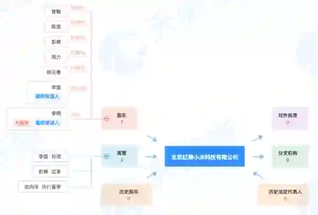 据天眼查数据显示,北京红棉小冰科技有限公司注册资本100万人民币,于2020年5月20日成立。李笛为法定代表人,第一大股东为李明持股70%,第二大股东为李笛持股为25.05%。