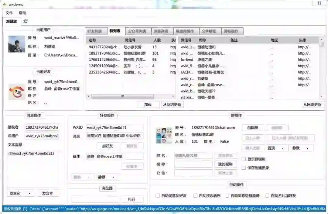 以下是我们的微信群控软件的演示版,企业微信类似: