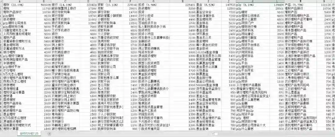比如旅游行业,当时有个知名网站,我们把整个旅游行业的词挖掘到了大概有500万左右。然后,像前面那样分组分类,就知道了这个行业大部分用户的诉求。