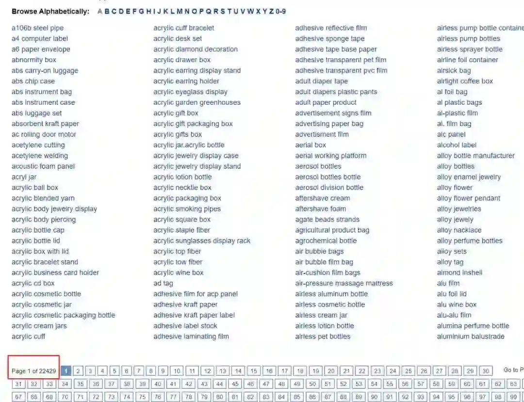 大家点一下A字母,这里都是以A开头的关键词,一页是120个词,A字母下有22429页,A到Z一共是2千多万个词。