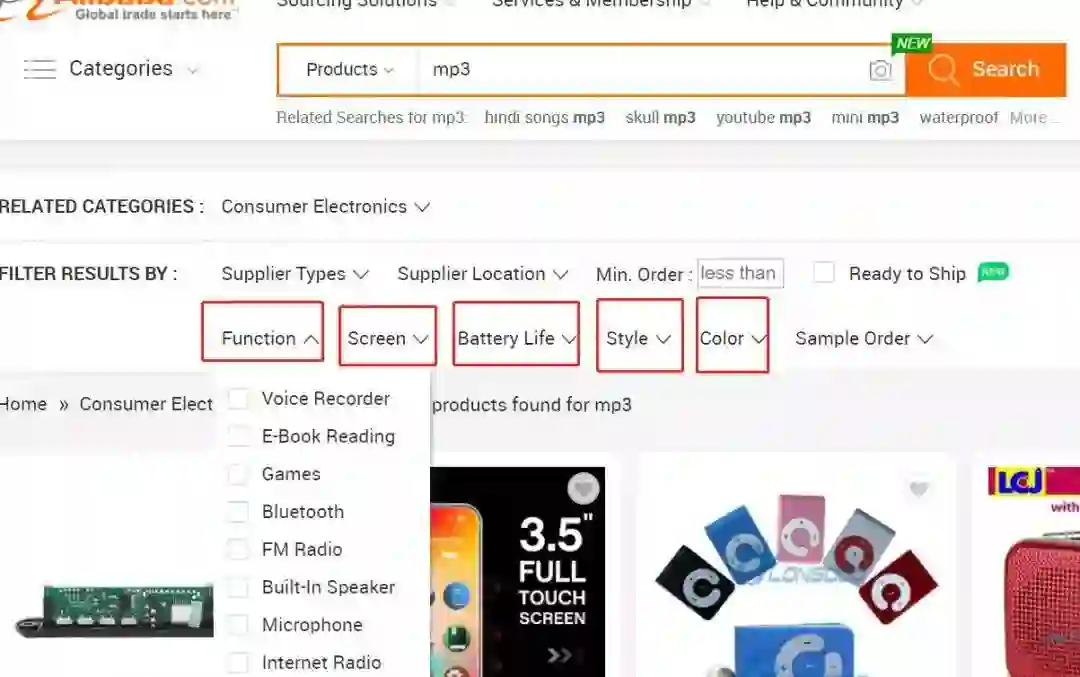 然后,再看阿里巴巴的一个页面(https://www.alibaba.com/showroom/mp3.html)。