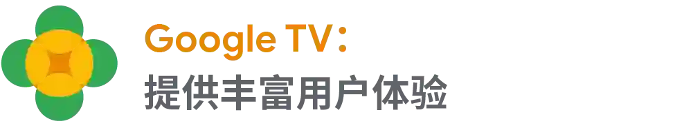 Google TV 以内容为核心、提供跨设备服务和顺畅观看体验。通过一套内容 Feed 汇聚全球娱乐内容并在多个谷歌产品中呈现给用户,从而给用户带来优质的谷歌产品体验以及世界范围内的娱乐内容。同时:Google TV 不断改进产品,扩大服务范围。