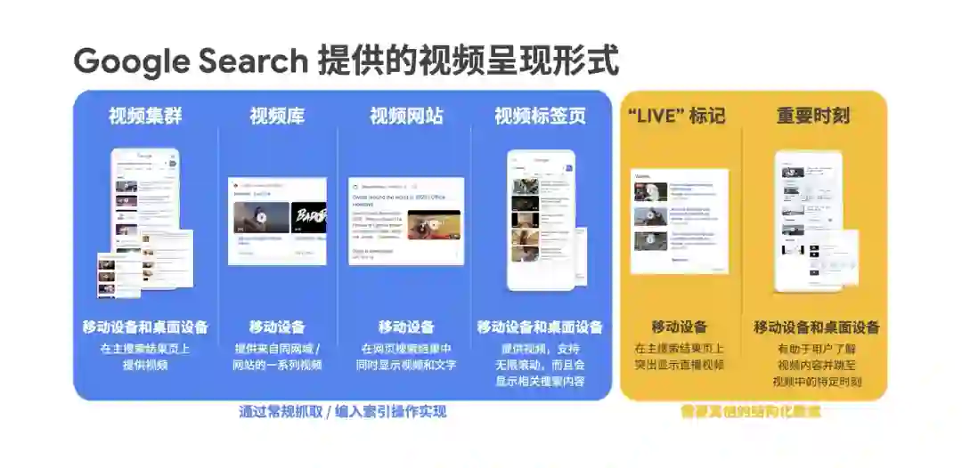 视频功能有助于更有效地触达用户。Google Search 致力于为用户提供最高效和最优质的观看体验。通过 Google Search 可实现高效、令人满意的视频观看情况,触达多元、优质的视频资料库,为用户提供新型、引导式的信息获取过程。