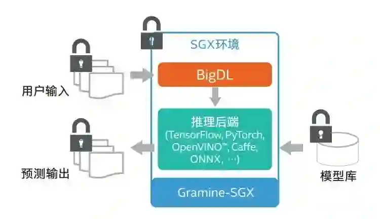 联邦学习中不同安全隐私技术综合评估 在这个行业,企业通常需要将已有的大量 AI 应用以联邦学习模式高效、便捷地扩展到现有的分布式大数据平台上(如 Spark、Flink、Hadoop 集群)。在此过程中,他们可能会遇到一些挑战,比如如何在开展联邦学习时依然保持 AI 训练与推理的高效能?如何在应用 TEE 技术特性时做到数据的全栈可信?如何将二进制应用程序不做改动地运行在 TEE 环境中? 英特尔与中国银联电子商务与电子支付国家工程实验室组成的联合研究团队通过开源的统一大数据分析与 AI 平台——BigDL,验证了基于 TEE 的联邦学习与实时预测方案,有助于解决上述问题。 如图所示,基于英特尔® SGX 技术的 BigDL 提供了自下而上可信的安全技术、不同层面的软件框架以及用于连接大数据平台和联邦学习方法的端到端平台。