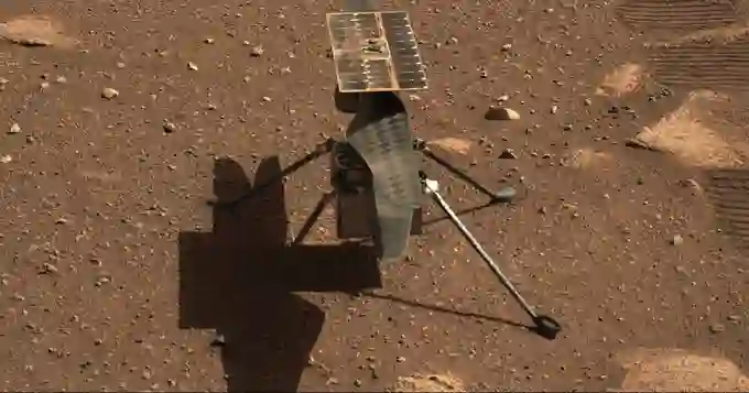 但机智号还是要脱离毅力号完成飞行任务的。在抛掉保护罩,缓慢展开,并将六块锂离子电池充满之后,机智号被放置在了火星表面上。放下机智号后,毅力号尽快驶离。接下来机智号依靠着它上方的太阳能板和内部的电池顺利撑过了火星寒冷的夜晚。
