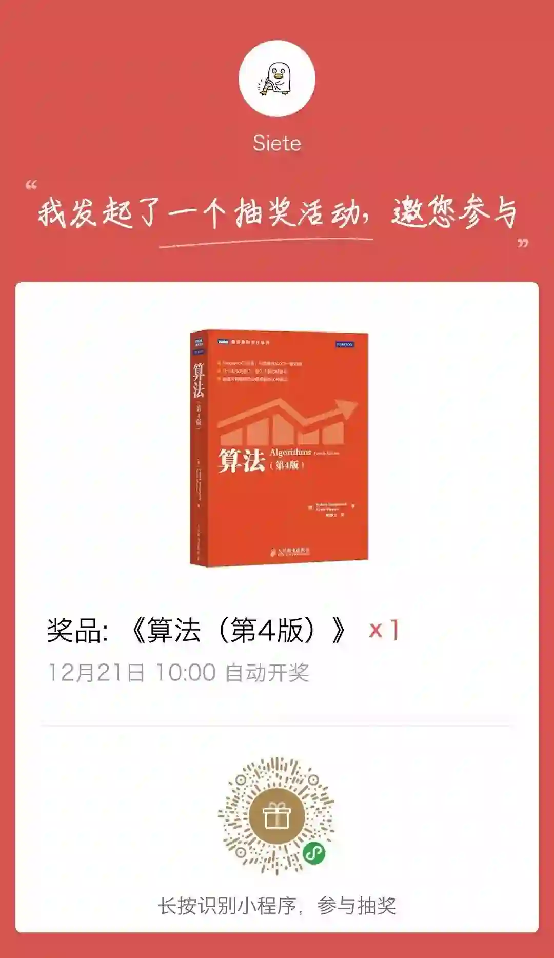 本期为大家送出3本《算法(第4版)》,小伙伴们说说自己在平时的工作中都会用到算法的哪些知识。或者说说你在学习算法时遇到哪些困难都是怎么解决的。欢迎大家畅所欲言。