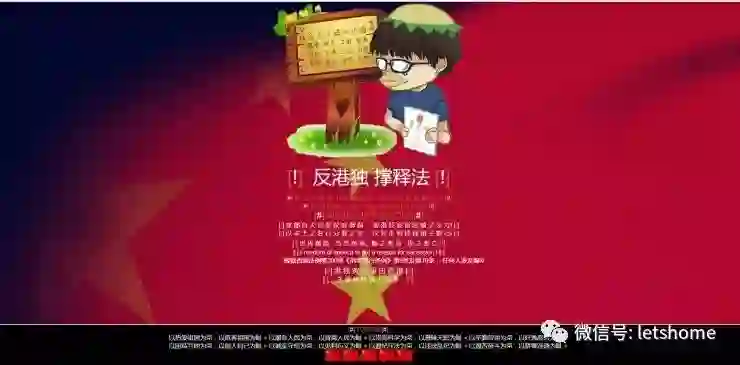 然而黑客也没闲着。“港独”组织“香港众志”的官方网站被黑客入侵,网站内容变成了以中国国旗为背景,头顶原谅色帽边帽子的鸭嘴“香港众志”秘书长黄之锋手拿一本基本法小册子,身后是24字社会主义核心价值观的宣传牌。
