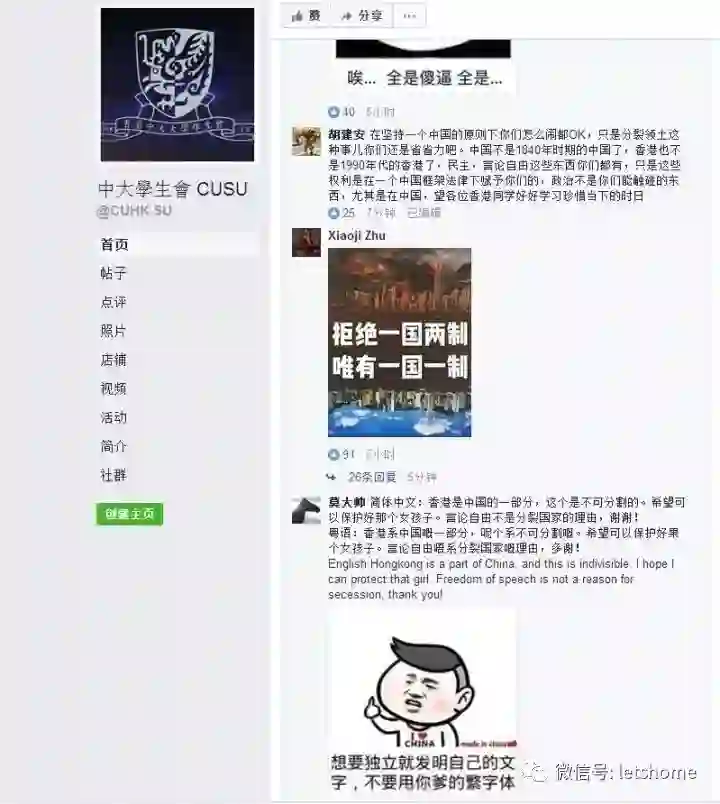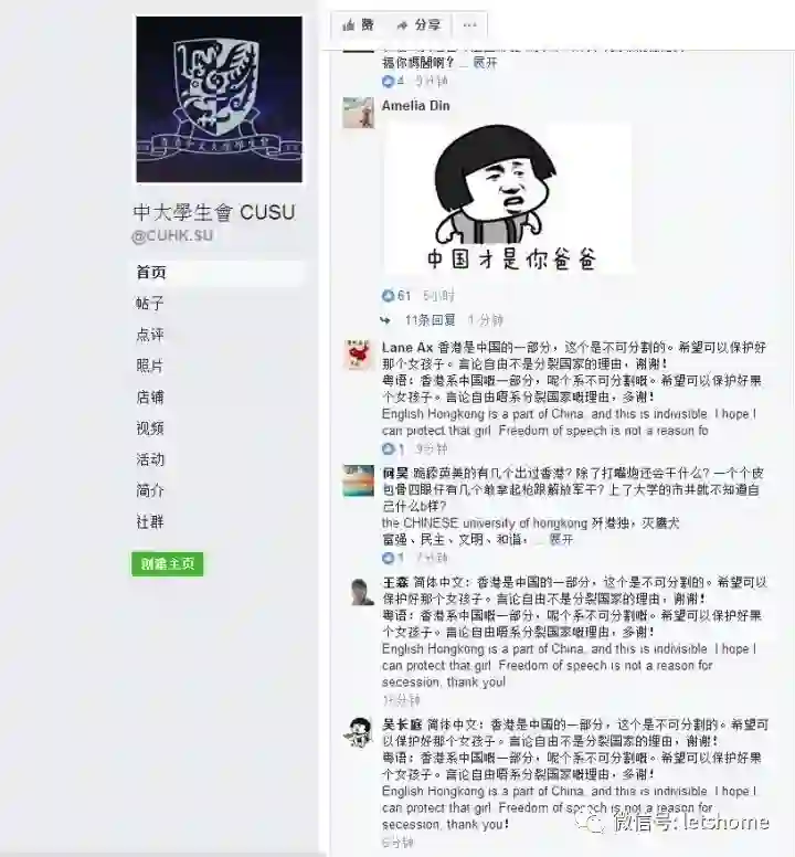 于是来自百度贴吧第一大吧李毅吧(俗称帝吧)的帝吧中央集团军组织了来自五湖四海的数名网友出征香港中文大学学生会Facebook主页,宅客频道强势围观了一波。