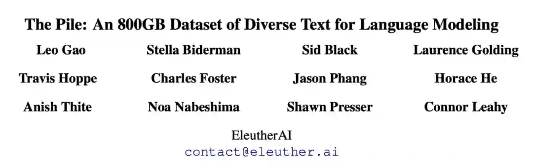 2021 年元旦,EleutherAI 发布了 The Pile,这是一个 825GB 的用于训练的多样化文本数据集。The Pile 由 22 个不同的高质量子集构成,包括现有的和新建的,其中许多来源于学术领域或各专业领域。