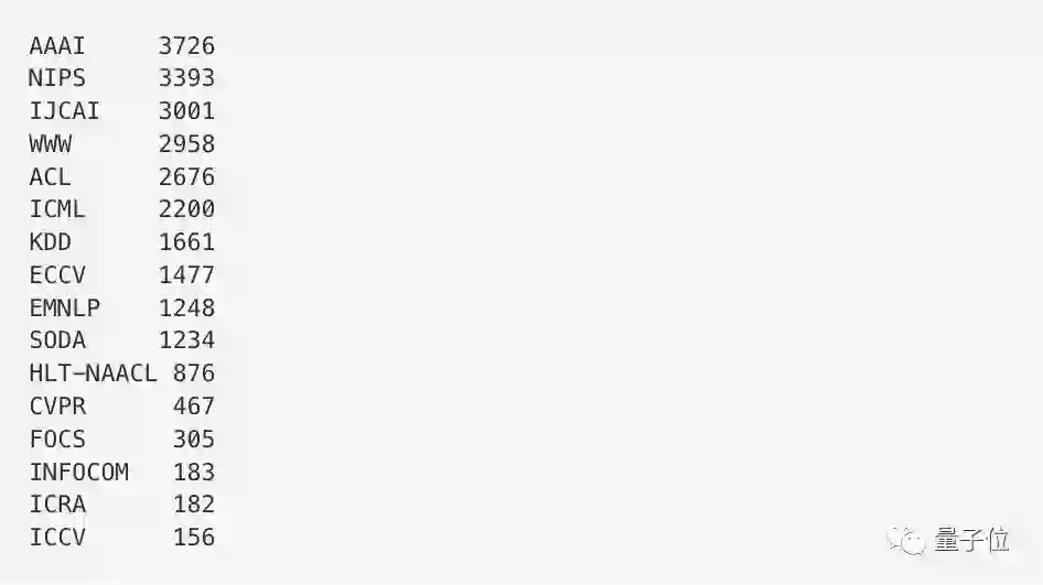 另外,会议必须要是重量级的,只考虑被AAAI、ACL、CVPR、ECCV、EMNLP、FOCS、HLTNAACL、ICCV、ICML、ICRA、IJCAI、INFOCOM、KDD、NIPS、SODA、WWW接收的论文。