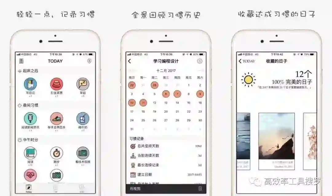 完成的习惯只需轻轻点击就表示完成,清脆的闹钟声会响起。