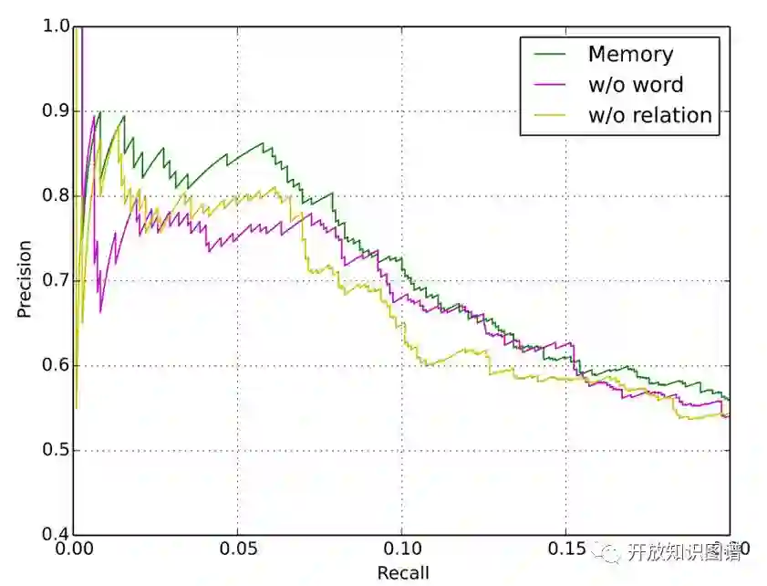 文章提出的神经网络模型包括三个模块:(1)单词级别的记忆网络,用于表示句子中实体对的上下文信息,即生成每个句子包含的实体对信息的向量;(2)关系级别的记忆网络,用于将实体对对应的句子集表示成相对于每一种关系的向量表示;(3)输出层,以句子集相对于每一种关系的向量表示作为输入,得到实体在各种关系上的可能性;