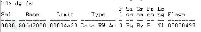 上面的例子中,在地址80dd7000h中有我们的nt!_KPCR结构。知道了这一点,我们就可以使用下方命令查看KPCR的内容: