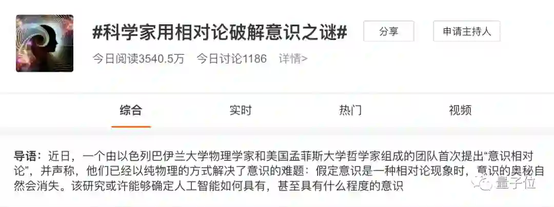 作者提出了一个全新概念“意识相对论”,声称用物理的方法解决了意识研究的难题。