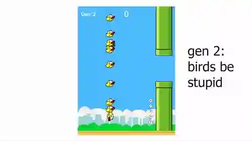 在每一代的 AI 里,玩得最好的可以进行繁殖,并把自己的优秀基因遗传给下一代。当然了,下一代也不会照单全收,还是会有小小的突变。