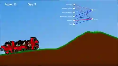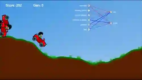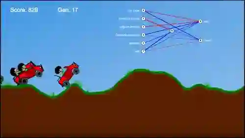 也是用 NEAT 算法训练的 AI 玩越野赛车。