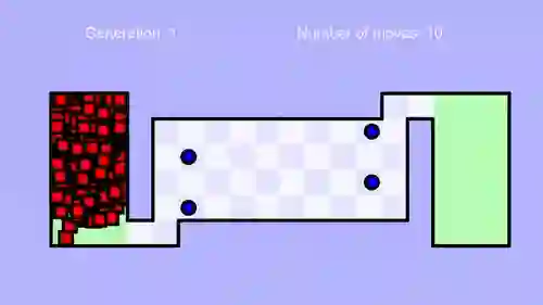 和自然选择理论一致,适合度最高的 AI 可以繁殖,做不到的 AI 就只能去死了。小哥规定,AI 要在有限的步数之内完成特定的指令。完成的指令越多,就可以获得更多的步数。