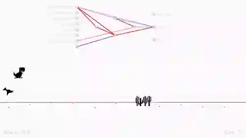 好的,小哥用 NEAT 玩坏的第二个游戏,就是 Chrome 浏览器连不上网时候出现的彩蛋小游戏——跳跳恐龙。