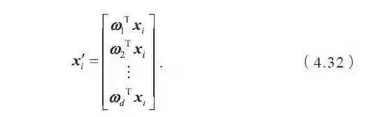 (4)取特征值前d 大的对应的特征向量,通过以下映射将n 维样本映射到d 维