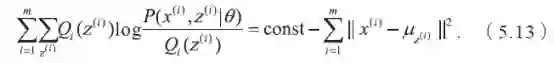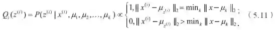 剩下的事情就是说明K 均值算法与EM 算法的关系了。K 均值算法等价于用EM 算法求解以下含隐变量的最大似然问题: