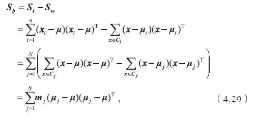 如果把全局散度定义为类内散度与类间散度之和,即St=Sb+Sw,那么类间散度矩阵可表示为