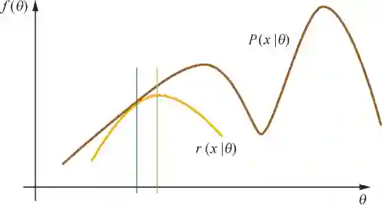 ;因此,,不等式右侧函数记为r(x|θ)。当等式成立时,我们相当于为待优化的函数找到了一个逼近的下界,然后通过最大化这个下界可以使得待优化函数向更好的方向改进。