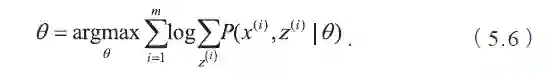当概率模型中含有无法被观测的隐含变量时,参数的最大似然估计变为: