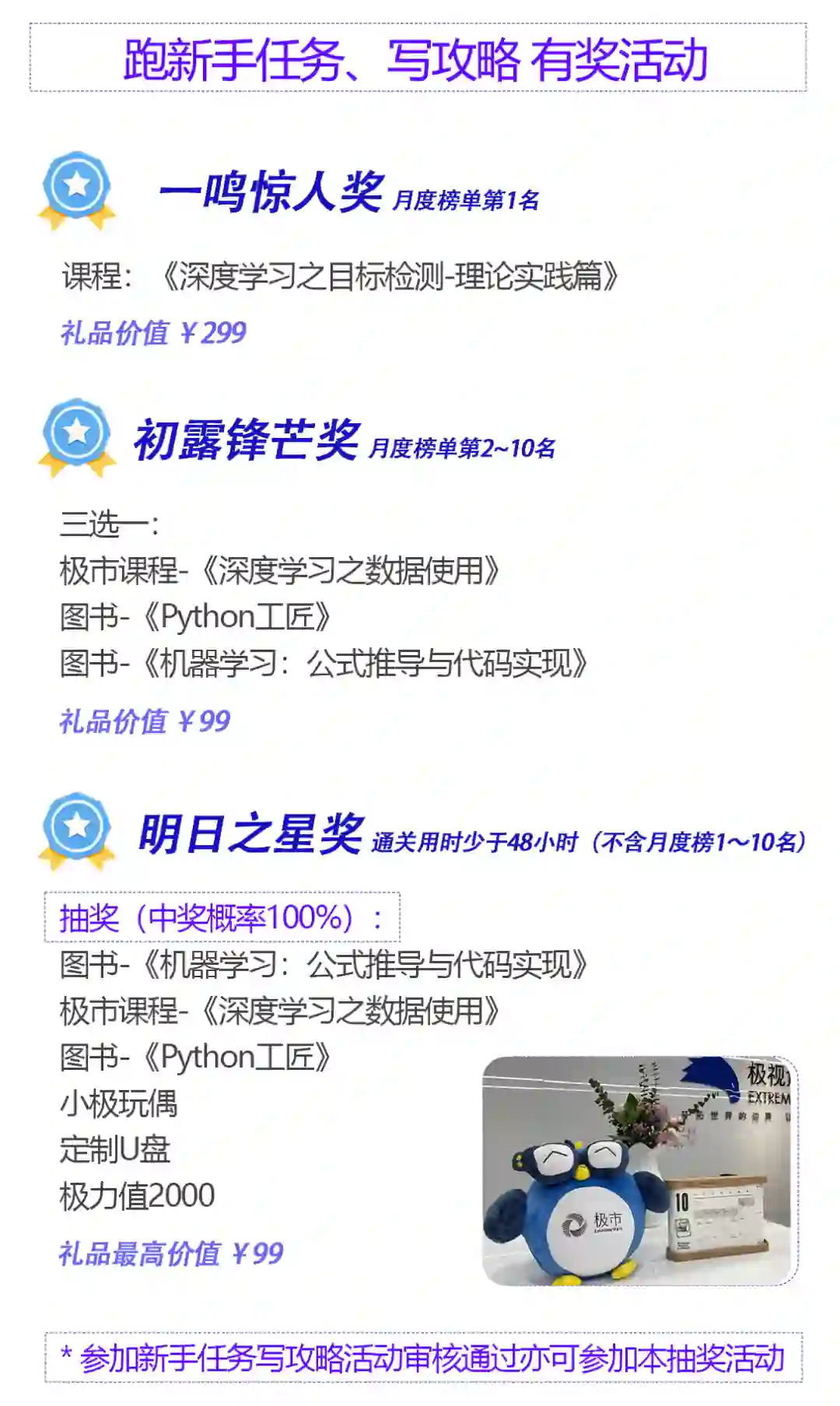 活动期间,在极市社区发文投稿分享您的新手任务实战攻略,合乎要求即可获得抽奖资格!