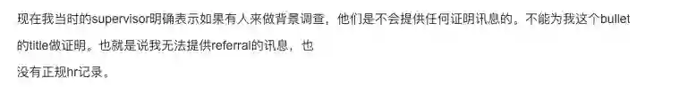 背景调查中关于你之前的经历其实是非常重要的一个部分,所以一旦你的旧supervisor掉链子,就很可能带来非常严重的情况。