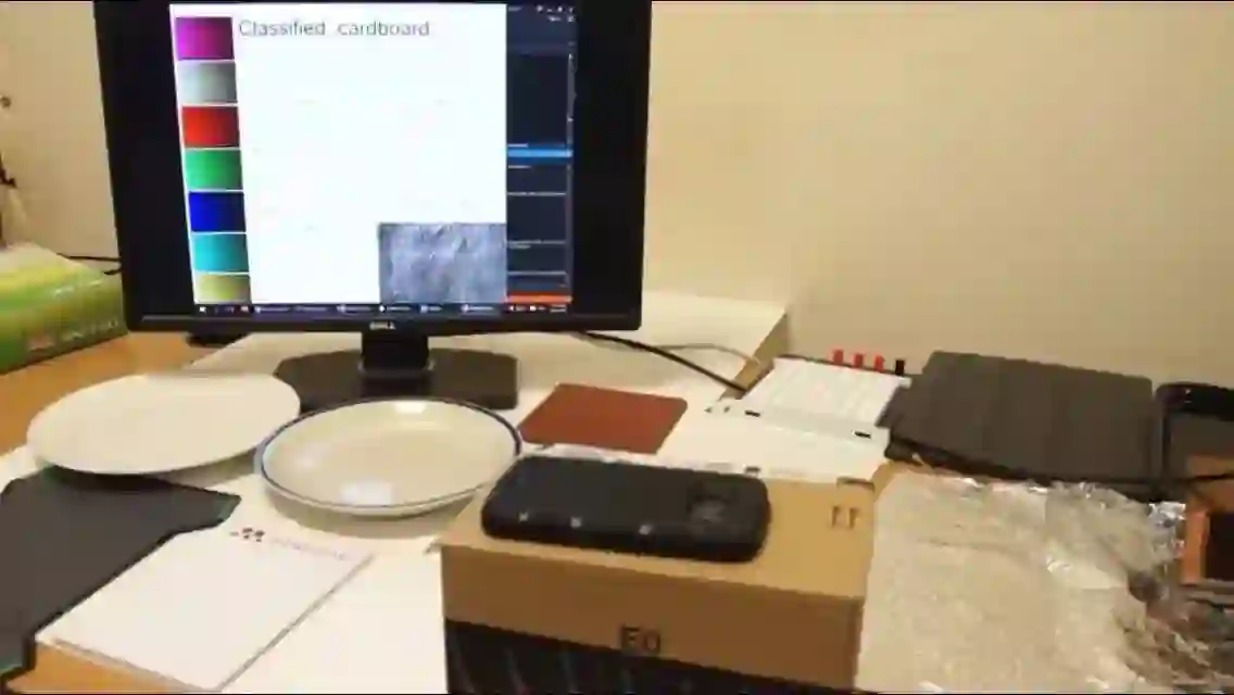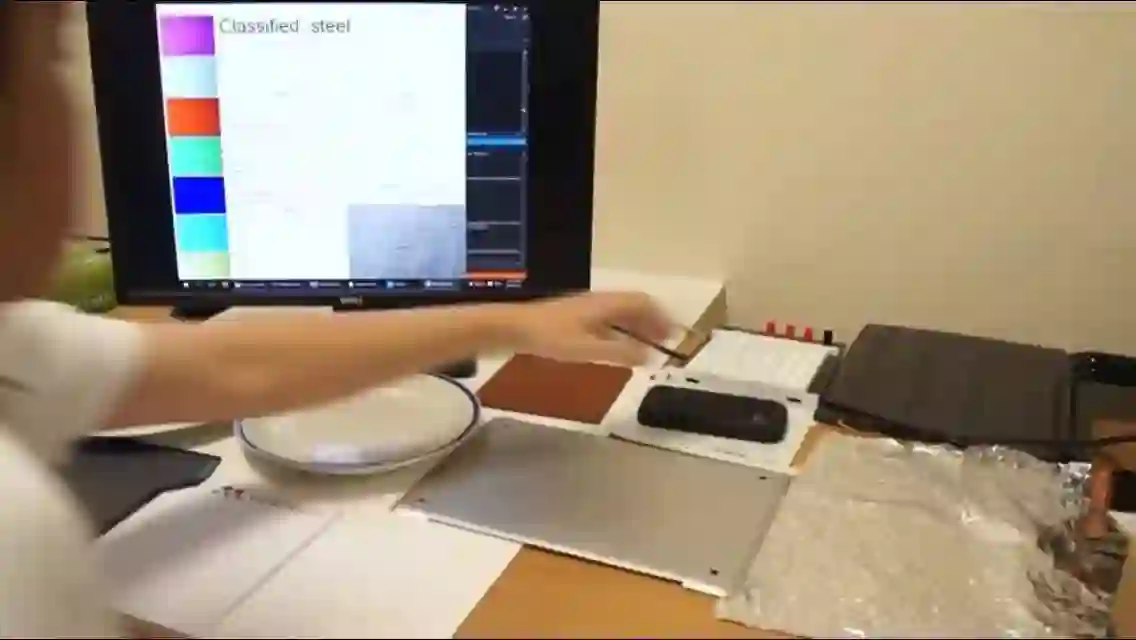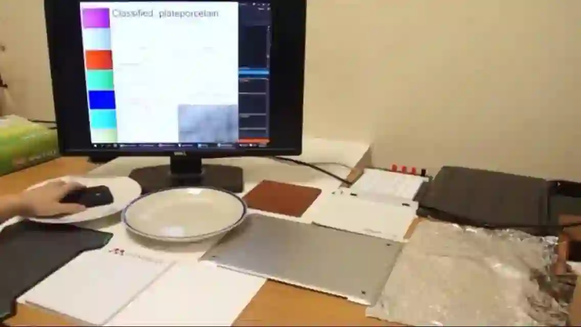 下面我们通过几张图片,展示一下研究人员在实验室利用这项技术识别不同物体表面材料的情况: