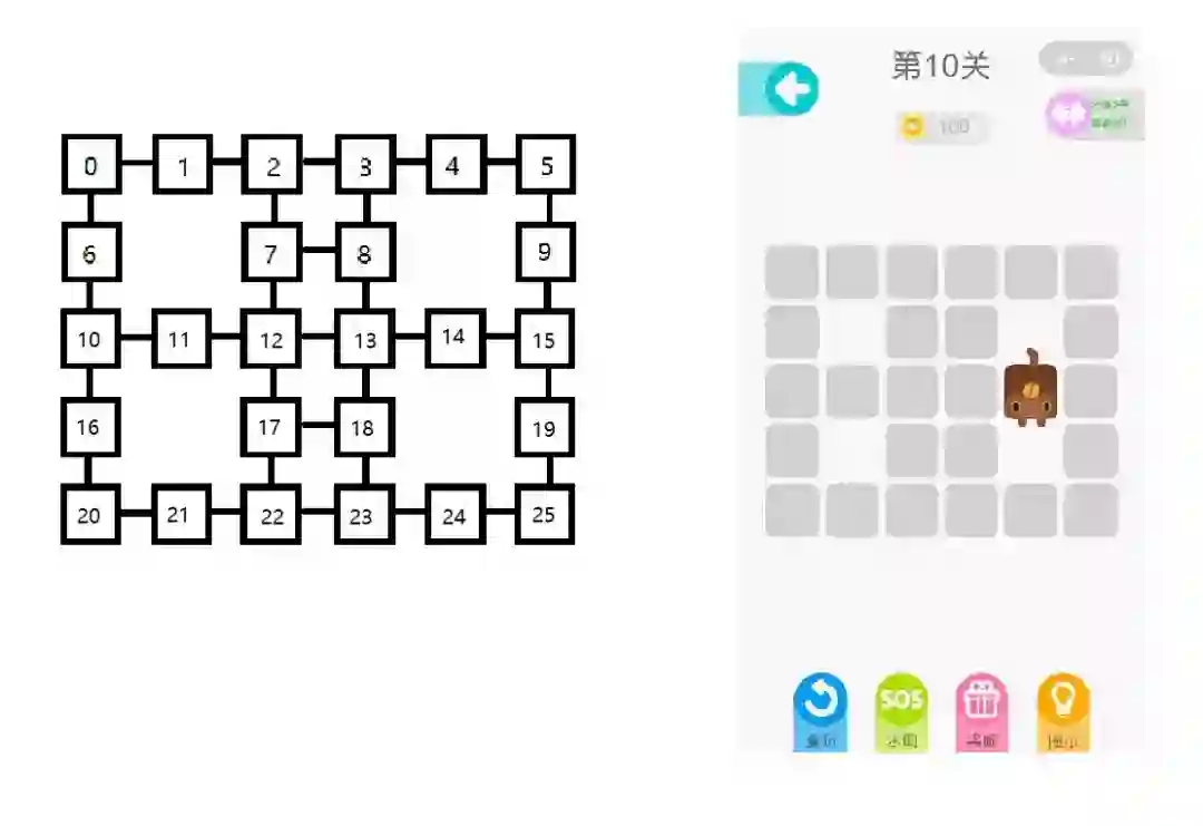 虽然找到一个图的哈密顿通路是 NP 困难的,但是好在游戏中的顶点不算太多,还是可以使用暴力一点的方法实现的,例如:图的深度优先遍历法(DFS) 即递归和回溯法思想。