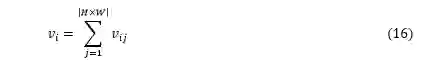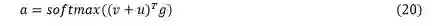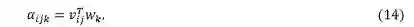 其中Wk表示静态单词记忆We中的第k行向量。Vij和Wk都先进行了归一化操作,因此αijk等价于cosine相似度。接下来区域特征Vij可以用记忆当中所有单词向量的加权和表示,如公式(15)所示。