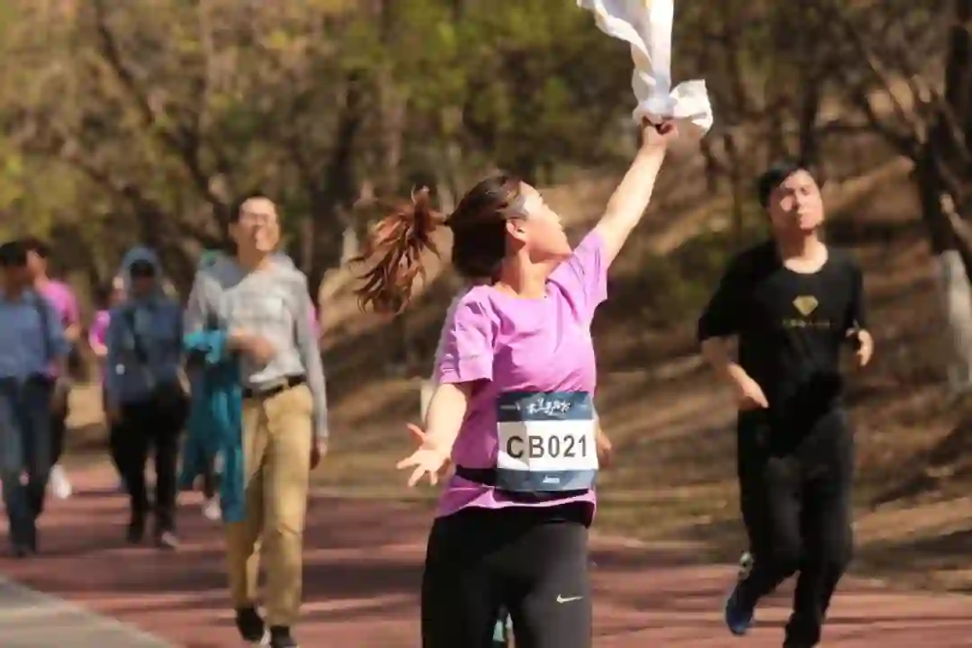 路上有人现场排兵布阵,一位领队对她的组员们胸有成竹地说,“我们先歇一会儿,等等第二名,要讲究策略和方法,也是对我们的紧张感做个有效的缓冲。”另一位向前跑着的组员脱口而出,“不能等第二!后面没有了,我要保持自己的节奏跑!”