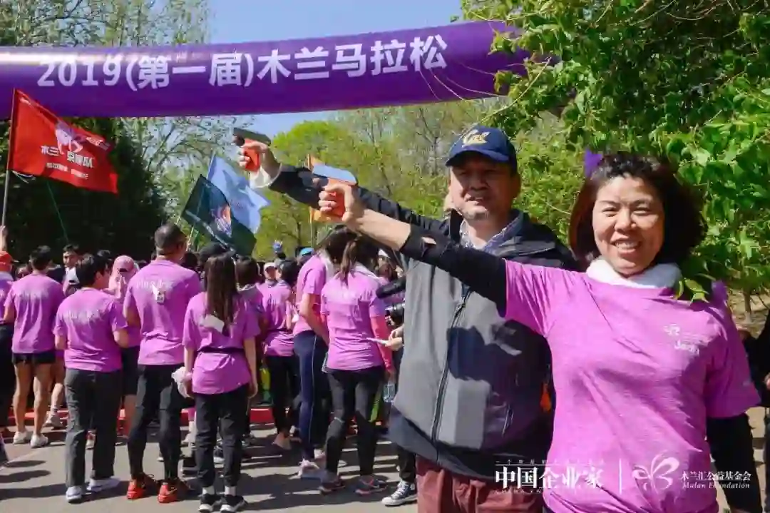 “为什么要举办马拉松?因为快乐。”《中国企业家》杂志社社长、木兰汇理事长何振红在现场为木兰跑友们加油助威。