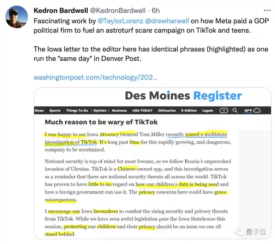 具体的则是通过各类渠道扩大对TikTok的负面报道,主要是两点: