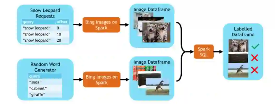 机器学习中最困难的部分是收集数据。传统的办法是人工标记,人工标记数据耗费大量的时间和精力。没有高质量的标记数据集,算法模型在实际应用项目中很难落地。现在,通过微软的 Bing 图片搜索结果可以辅助我们标记大量的数据集,这样就解决了人工标记耗时耗力的问题。Bing 图片搜索已经和 Spark 集成到一起了。