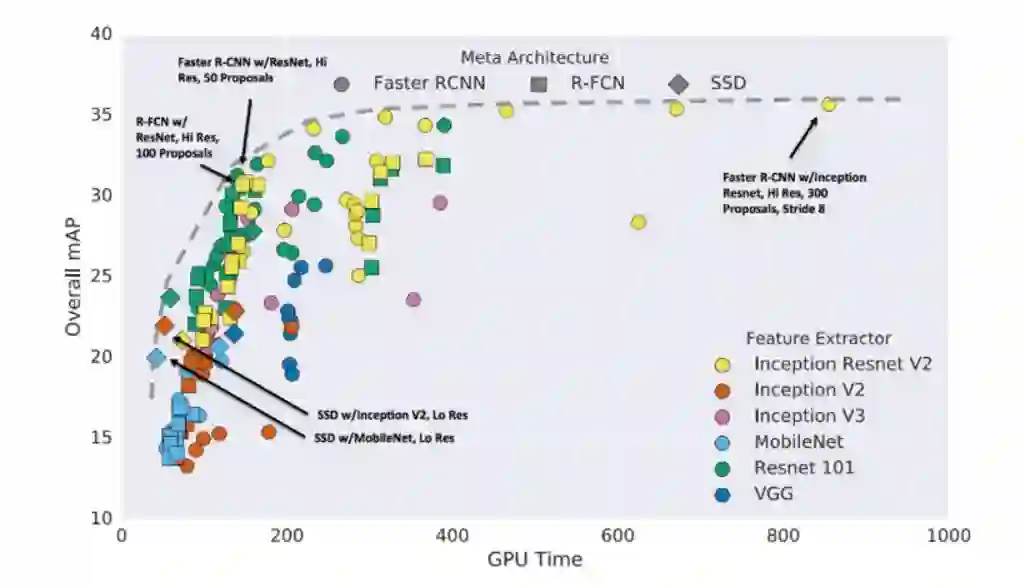 经过对比,我们最后选用了 Faster R-CNN 网络和 Inception Resnet v2 网络,它们结合起来,在准确率、性能、速度方面目前是最优的。从最后识别结果来看,跟人类标记非常接近。如下图所示: