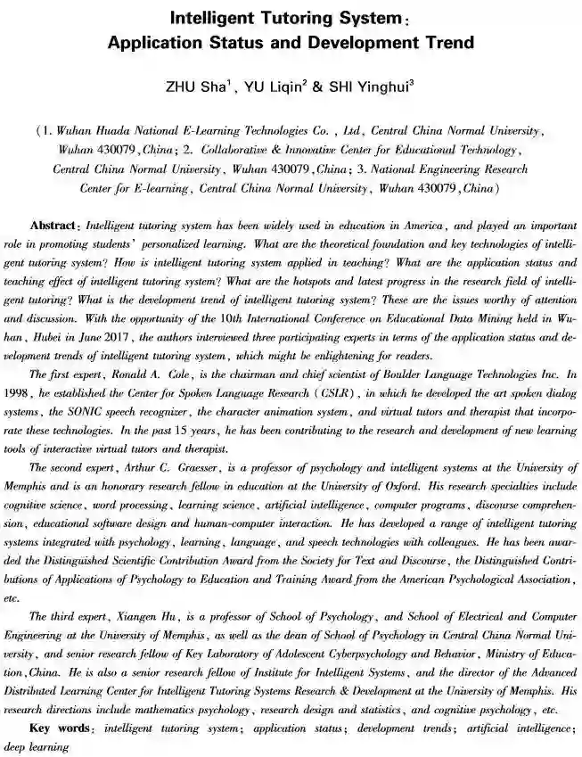 关键词:智能导学系统;应用现状;发展趋势;人工智能;深度学习