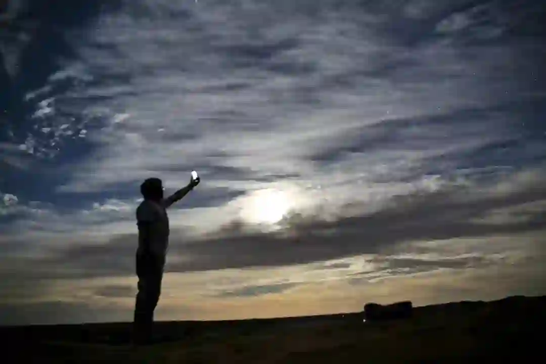 有一阵子,所有人都屏住了呼吸,不再出声。置身于浩瀚璀璨的星空下,人群的静谧融入了沙漠辽阔无边的黑夜。巨大的天穹坠满繁星,有些倒映在夜幕深蓝的湖心,有些从云层表面浮现出来,点缀其上。不远处,如海浪般起伏的层云中浸泡着一轮圆月,像是酝酿着从海面一跃而起的太阳。一颗流星从穹顶迅疾划过,转瞬即逝。