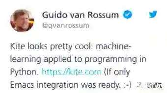 在Kite的鼎盛时期,不少开发人员都对这款「编程黑科技」赞不绝口,甚至还包括了Python之父Guido van Rossum: