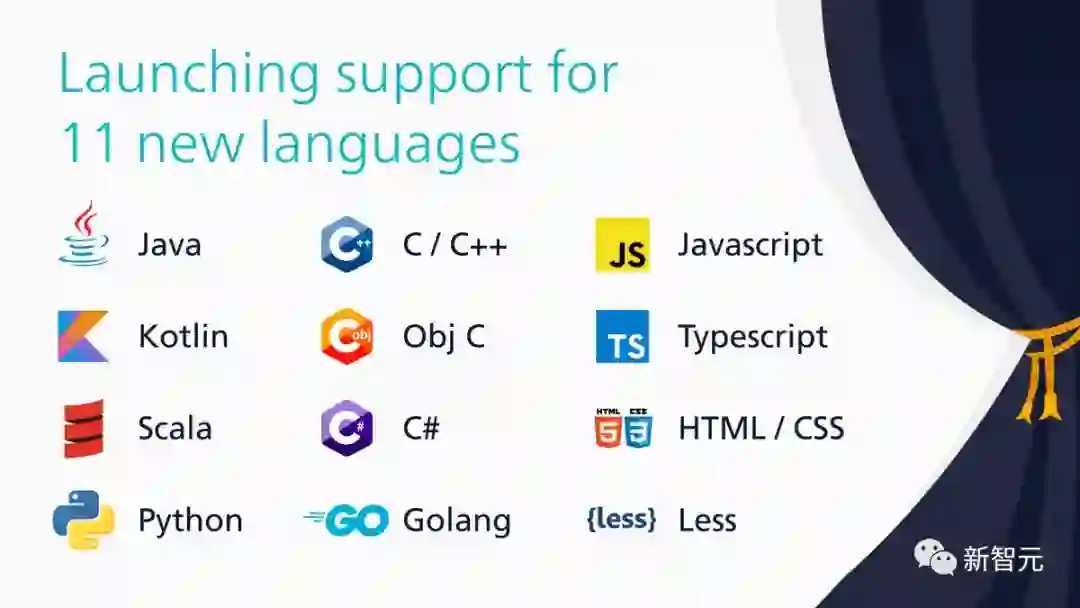 新支持的语言包括Java、C、C++、C#、TypeScript、Kotlin、Objective C、Scala、Go、HTML/CSS和Less——它们几乎都在RedMonk的前20名最流行的编程语言列表中。
