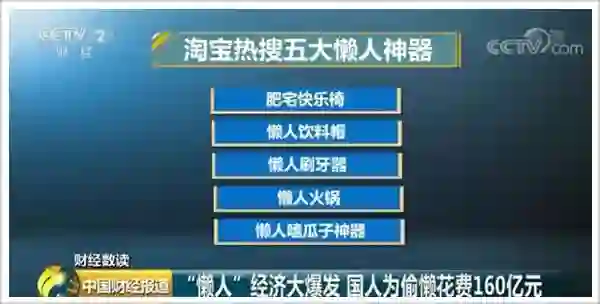 根据淘宝《懒人消费数据》,2018年,中国人为偷懒,花了160亿,较2017年增长70%。其中,95后懒需求增长最快,增幅达82%。