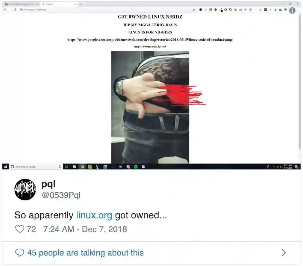 Linux.org 昨日遭到恶意 DNS 劫持,攻击者将其指向了一个新的页面,上面包含一些非常粗俗的内容以表达自己对 Linux 社区和 Linux 此前制定的行为准则的不满。