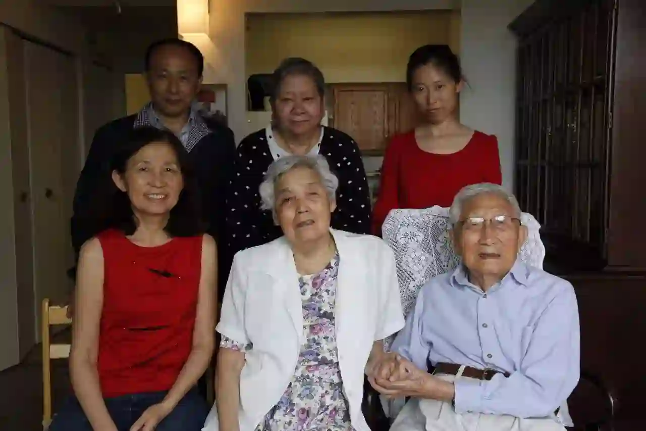 ►2017年5月28日,本文作者在华盛顿DC某老年公寓拜见巫宁坤夫妇,前左起为巫一毛、李怡楷、巫宁坤,后左起,程宏、黄肖路、万青。